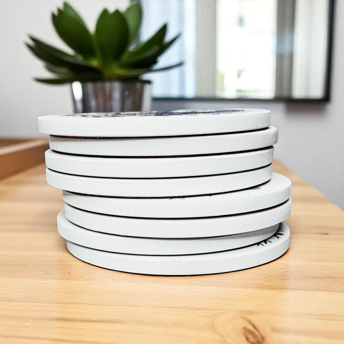 - Ceramic Coasters with cork back to prevent scratching