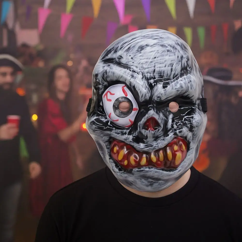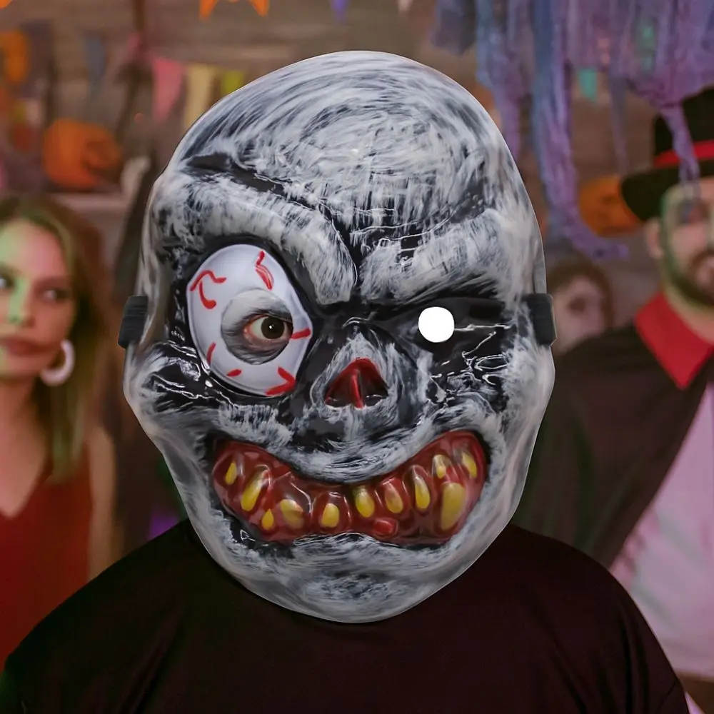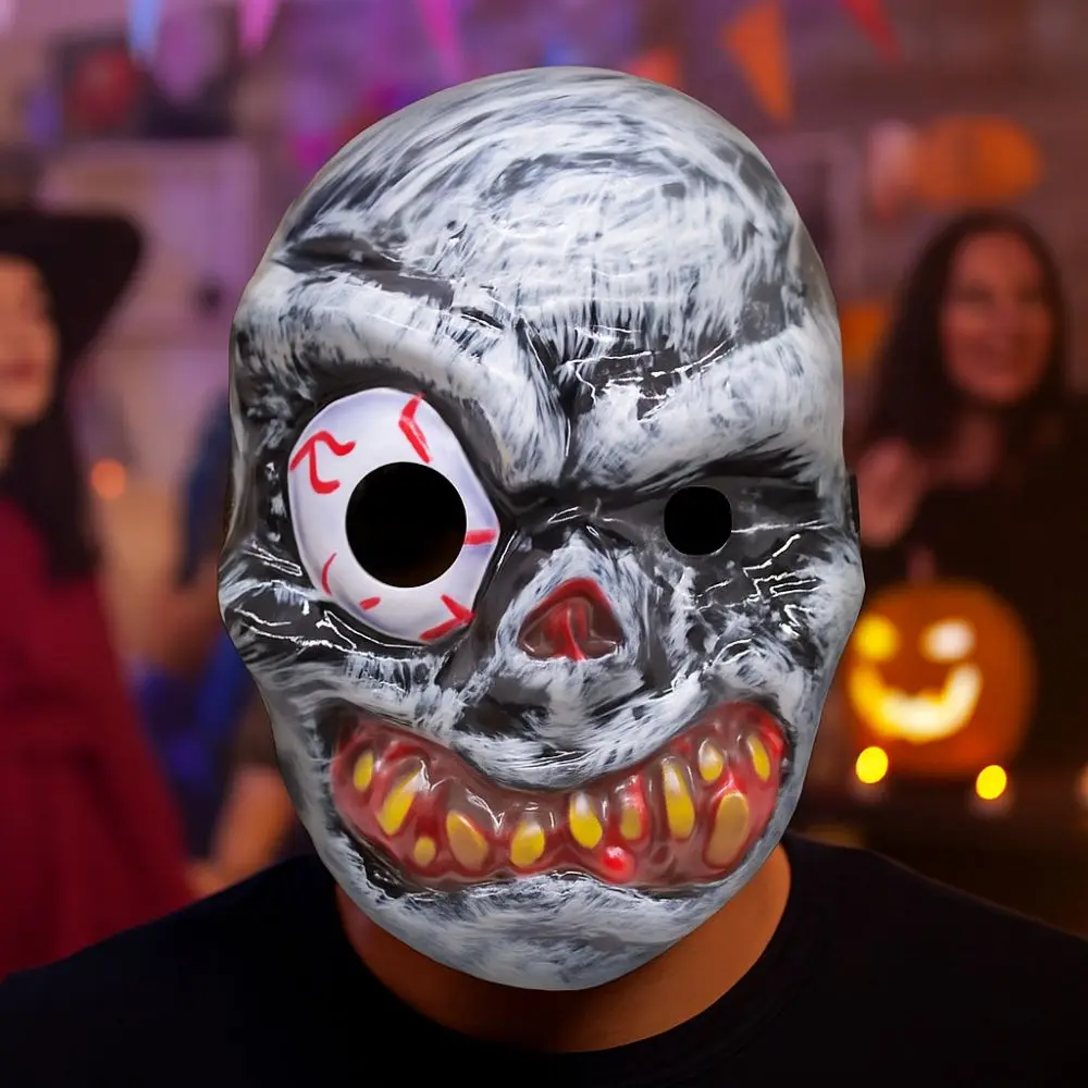 Full Face Halloween Ghost Mask One Eyed PVC Ghost Headwear Breathable Scary Props Scary Ghost Head Cover Halloween Celebration