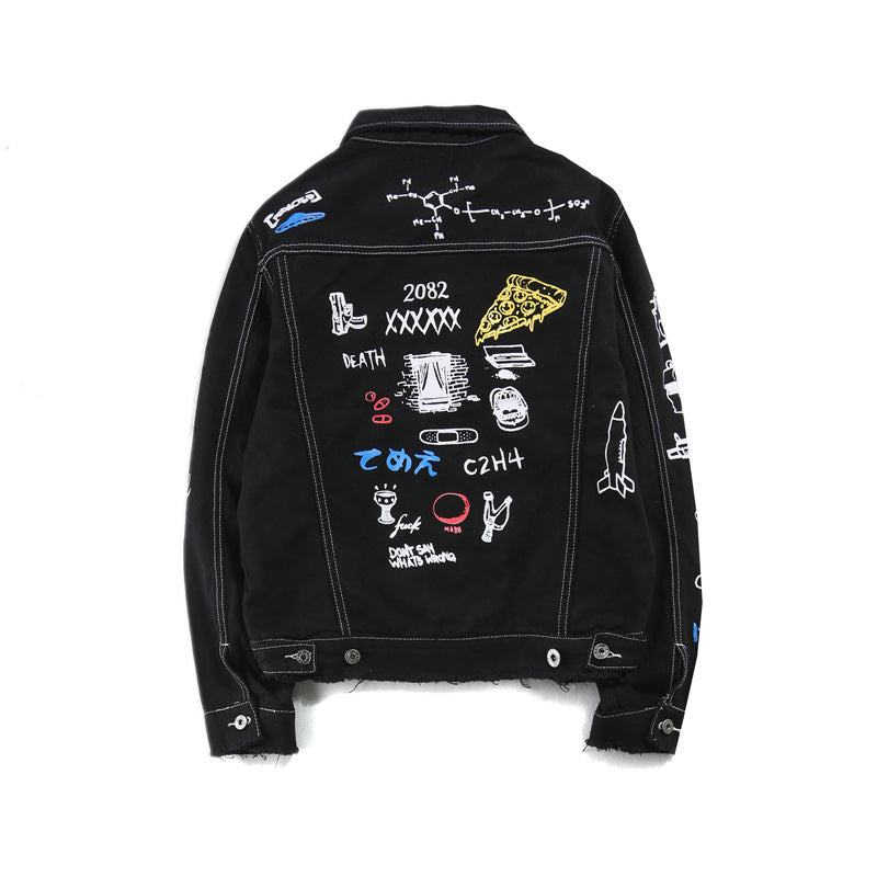 Hip Hop Fashion Printed Jeans Jacket Men Autumn Winter Streetwear Denim Jackets Coats Cowboy Jacket Jaqueta masculina
