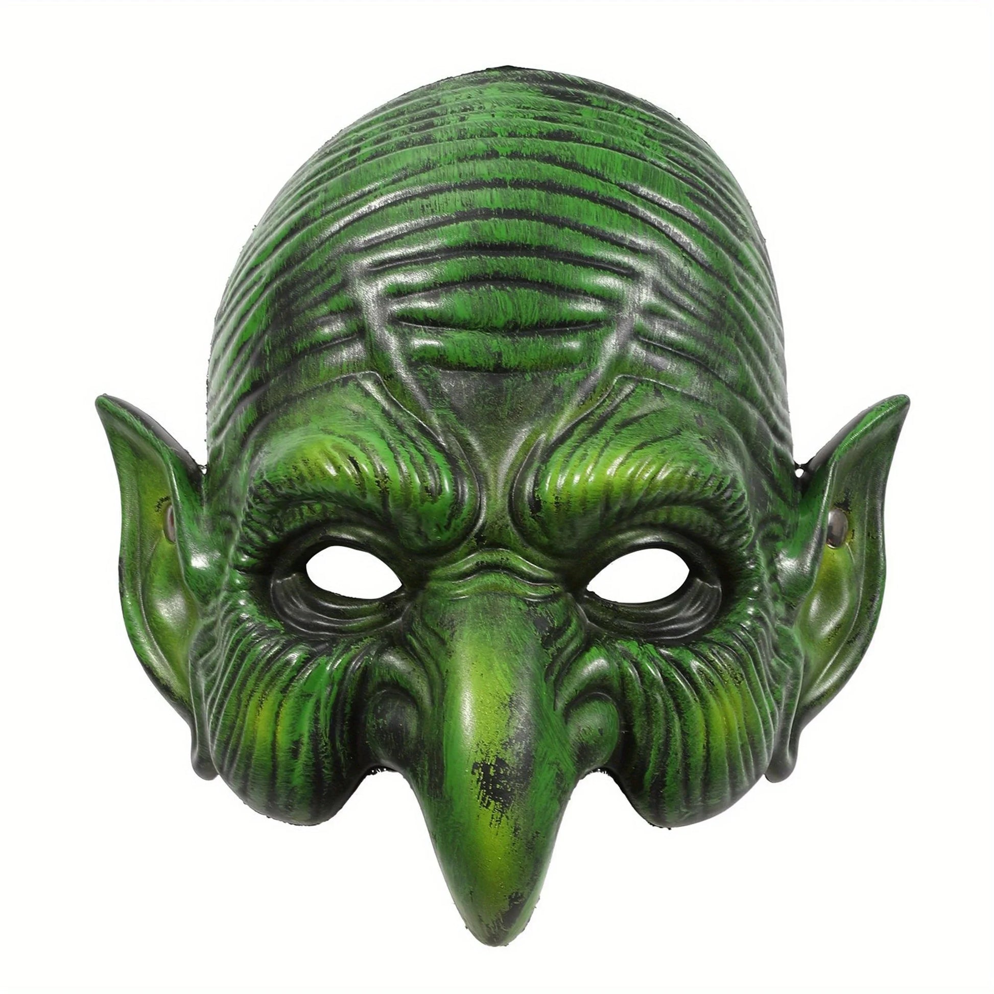 Men's Horror Green Goblin/Halloween Witch Half Face Mask with Pointed Ears and Sharp Teeth - Fashionable and Spooky Costume